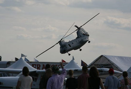 ![]() Wingwalkers from the Walt Pierce barnstorming act hang out during the 2008 VNA Air Show in Stuart. | ![]() U.S. Marine Corps CH-46 helicopter swoops in during the 2008 VNA Air Show in Stuart. |