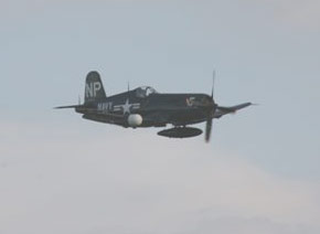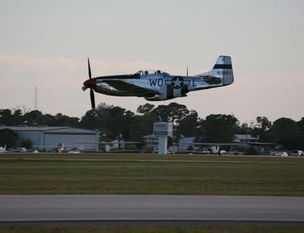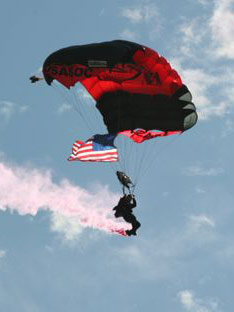 ![]() F-4U Corsair warbird performs at the 2008 Stuart Air Show. The plane's wings fold up for maximum storage on an aircraft carrier. | ![]() A Black Dagger from the U.S. Army's precision parachute team drops in with the American Flag to open the 2008 Stuart Air Show. | ![]() WWII era P-51 Mustang makes a high speed pass at the 2008 Stuart Air Show at Witham Field. |