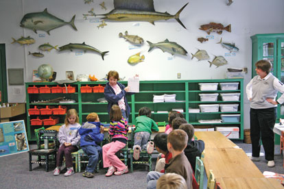 The ART TeacherSTORY AND PHOTOSBY GREG GARDNER As the only art teacher at Felix A. Williams Elementary School in Jensen Beach, Kathy Kernan can't event count all the different hats she wears each week. During a recent early dismissal day, Kernan was manning a bullhorn following the students' walk around the school's track. Amid a cacophony of energetic, bubbling kids, she showed the skill of an experienced cowhand in rounding them up before they headed back to class. "I teach every child in the school," said Kernan, a 21-year art teacher in Martin County. "All 660 of them pass through my doors once a week. It's fast paced. It's hectic. It's exciting. There is a lot of prep for six shows a day." In addition to her six classes a day, and each class certainly gets a show, Kernan serves on several schoolwide committees, annually makes the school teacher of the year banner, prepares the school's art display for the Martin County Fair, and finds time to volunteer as mentor for a small fifth-grader named Riley. "He gets that one on one," Kernan said. "I help him with his other classes. Mostly I'm there to ask him if everything is OK. I try to be there for him." Howard Marder, assistant principal at Williams, said Kernan is eager to pitch in to do what's needed for the school. "She facilitates schoolwide events and is a valuable staff member to Felix Williams," Marder said. "She's a team player. It's very easy to give her accolades," Marder said. And her peers have three times recognized Kernan's commitment to inspiring her students. She was named Teacher of the Year at J.D. Parker Elementary in 1989 and again in 2002 at Felix Williams. But the biggest recognition came later in 2002 when Kernan was named Martin County Teacher of the Year. "There is a good feeling about getting kids to work from the inside of their thoughts and ideas and bring that to the outside in the form of expression through visual arts," Kernan said. "The hardest thing is stopping after 45 minutes when they are really into it and they don't want to go and I don't want them to go. When I see the parts of what I do displayed as a whole and when I see the variety and talent I say, 'Wow. Look at what they are doing.' It's cool. They inspire me." Kernan's influence lingers long after the kids leave Felix Williams. "Every day I teach I hear her name all day long," said colleague Kathleen Bartemes. "She entertained them. They love Miss Kernan." Despite her love for her students and her work, Kernan worries about the future of teaching and the arts. "I worry about budget cuts and the arts getting put on the chopping block. I feel passionate that it's important that we keep art in public education. The kids love it. They need it. They benefit from it." Created on 12/27/2007 08:25 PM by ind1an Updated on 02/25/2008 11:11 PM by ind1an |