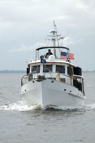 The HarmonySTORY AND PHOTOSBY GREG GARDNER While many sailboats spend a large amount of time sitting around with sails in storage, Paul Rubin's Harmony has logged more than 75,000 miles from the South Pacific to the Caribbean. You would never know it to look at the Harmony today, but the racing schooner sustained $180,000 damage after Hurricane Wilma. "I was tied up at the Pelican Yacht Club when a motor yacht broke loose and totaled four boats," Rubin said. "Mine was the only one that survived. There was no structural damage, but it takes forever to repair." Today the boat looks spotless with shiny metal and teak from stem to stern. Rubin keeps the boat at Harbour Isle in Fort Pierce, where he said the marina offers perfect protection from hurricanes with the surrounding buildings blocking heavy winds. When his business transferred him to Hong Kong, Rubin took Harmony apart, and shipped it to its new home on the South China Sea. After putting it back together again, he would log thousands of miles in the South Pacific. "The Philippines is the nicest place," he said. "You put into a harbor, go ashore and meet the most friendly people. There are some really beautiful islands. It is like going back in time." At the Royal Hong Kong Yacht Club, where Rubin is still a member, "there was always a conversation about what to do about pirates. You can't carry a gun. In some countries it is penalty of death. So if you surrender the gun, then you have to worry about whether you will get it back. Most sailors don't carry guns. We decided you unhook your propane tank, heave it onto the pirate boat and shoot a flare into the boat. They don't really bother sailboats. They want cargo ships or small tankers." The highlight of Rubin's sailing adventures in Asia was winning the 1996 China Sea Race with a crew of eight including sailors with five different nationalities. "It's the biggest race in Southeast Asia, from Hong Kong to Subic Bay, Philippines — 800 miles. It is the equivalent of the Newport to Bermuda race." Rubin plans to enter the 2009 Antigua Classic Yacht Regatta. "It's nice to get out there and race with the other classic schooners. It's more about the fun, but it is serious racing. It's a great big party." The Chesapeake Bay Schooner Race and the New York City Mayor's Classic are two other regattas Rubin has raced as captain of Harmony. Lately, he takes the boat out for day sailing every other week and three or four times a year to the Bahamas. "I'm not ready to give it up yet," Rubin said. "I enjoy just working on it. I was varnishing all day today. I will keep it up as long as I can raise the main sail." |