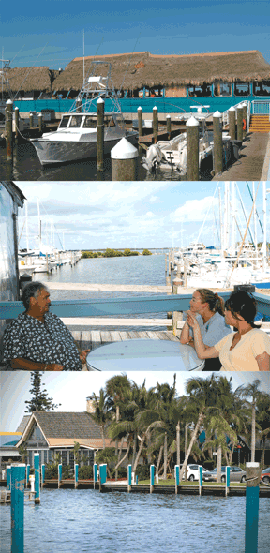 Tie Up and DineBY GREG GARDNERTaking the boat out each weekend to try a new place for lunch will take you almost six months to tie up at the two dozen waterfront restaurants on the Treasure Coast. That doesn't include the restaurants in downtown Stuart, Fort Pierce and Sebastian within walking distance of public docks. Martin County boasts a dozen riverfront locations, St. Lucie County has seven and there are five scenic eateries in Indian River County. "We have 26 boat slips to accommodate up to 70 feet with a 5-foot draft," said Frank Kilian, general manager of Finz Waterfront Grille. "On weekends about 25 percent of our business is boat traffic. We keep the slips open." Kilian said one couple rides up three or four times a month and order food they eat on their boat. Food yes, but alcohol, no. "We can't sell alcohol to go," he said. The Manatee Pocket in Stuart is popular on sunny weekends with Shrimper's, Finz, Bare Bones Grill and Brewery and Pirate's Cove Resort and Marina all almost within sight of each other. Pirate's Loft Restaurant offers poolside dining and a place to cool off after a day at the Stuart sandbar off Sailfish Point. "The weather is a big factor," said Bones Maxson from the Pirate's Cove Marina. "On the nice weekends people are off and they come in here. We have a pool and reggae." Two especially picturesque spots are next to the Roosevelt Bridge in Stuart, the Pelican Cafe and Fiji's. Both are accessible from the city docks, which fill up quickly once a month for the Sunday jazz concert. Within a half-mile are a dozen restaurants in downtown Stuart. Another popular riverfront destination is the Dolphin Bar and Shrimp House, one of the oldest locations in Martin County. Formerly Frances Langford's Outrigger Restaurant, The Dolphin has retained its Polynesian feel and has an interesting shrine to Langford. Its boat slips, which were recently renovated, are again open for boating diners. Another rustic building is Conchy Joe's Seafood just north of the Jensen Beach Bridge to Hutchinson Island. It was heavily damaged by the two hurricanes, but recent renovations shored up the main building, which dates back to the 1920s. A quiet restaurant west of the old Roosevelt Bridge is The Deck. A little farther north on the east side of the new bridge is Wahoo's on the Waterfront. Warm weather and live music draw people to the outside tiki bar. Port St. Lucie's boating destinations are both on the North Fork of the St. Lucie River, Club Med Sandpiper and Hurricane Grill and Wings. On the way to Fort Pierce is the Landing Restaurant at the Nettles Island Marina. In downtown Fort Pierce there are a dozen restaurants within walking distance including Cobb's Landing and The Original Tiki Bar of Fort Pierce. Boaters who prefer a location near the South Bridge can stop at 22 Fisherman's Wharf and those north of the North Bridge can stop in at Harbor Cove, 1930 Harbortown Drive. In Indian River County, Vero Beach's most popular place on the water is the Riverside Café under the north bridge. But for sheer size Captain Hiram's in Sebastian is the king with huge crowds jamming the riverfront each weekend. Bob Litchfield has been boating local waters since 1965. Every week or so he heads out for food and drink at a different spot. "We go out to eat and we like to fish at night," said Litchfield. "We keep live bait in the well. I've caught a lot of snook off the dock at Conchy Joe's. I don't keep many of them. We eat at the restaurant and let the fish go. Your game fish are nocturnal. Dock lights attract predators and bait," he said. Bob Henderson of Palm City likes to take his 46-foot Sea Ray for lunch with his friends. As he prepared to shove off from Finz in Port Salerno, Henderson said he likes to get out once a month usually to the Manatee Pocket where he has four choices to dine. "The Waterway Cafe (in Palm Beach Gardens) was my favorite spot, but now it costs too much to go there," he said. Steve Bohner likes to take one of his two boats out each weekend to enjoy dinner on the water. "It's a nice way to go by water," he said. "You can go anywhere. There is no traffic. It's a nice leisurely cruise. We're blessed to be able to go around Stuart by boat." |