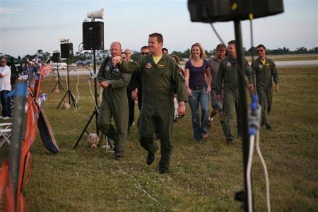 ![]() USAF Capt. Russ T. Piggott is doused following his last air show demonstration flight at the 2008 VNA Show in Stuart. He will be transferring to California to serve as an instructor pilot for the Air Force. | ![]() Capt. Russ T. Piggott, center, prepares to celebrate his last F-16 demonstration flight at the 2008 Stuart VNA Air Show. |