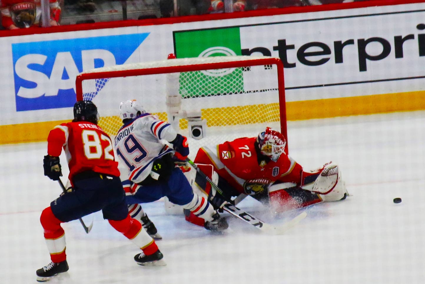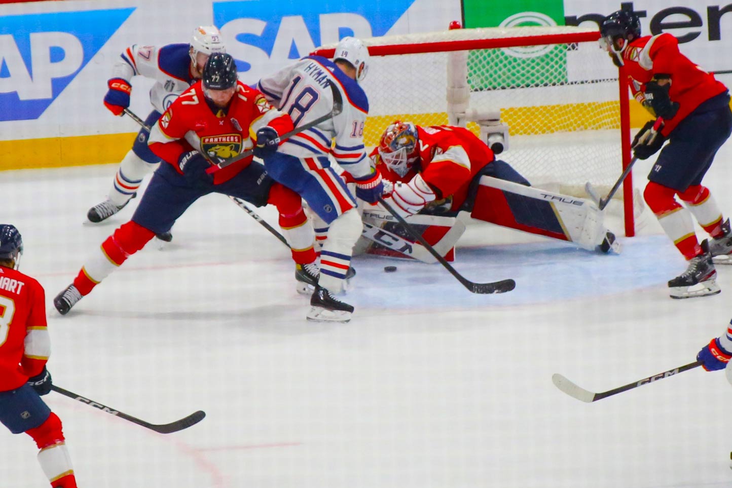 Bobrovsky blocks another shot on goal to keep the Oilers