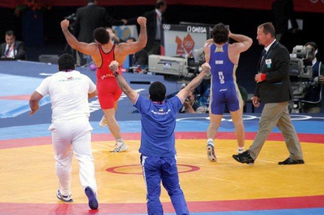 Ghaseum Gholamreza Rezaei wins the 96kg Greco-Roman Wrestling gold medal.