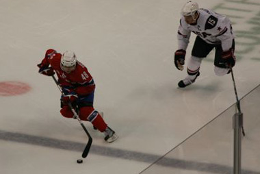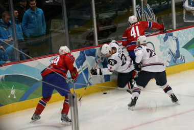 forward Jamie Langenbrunner in his only shot on goal in the 6-1